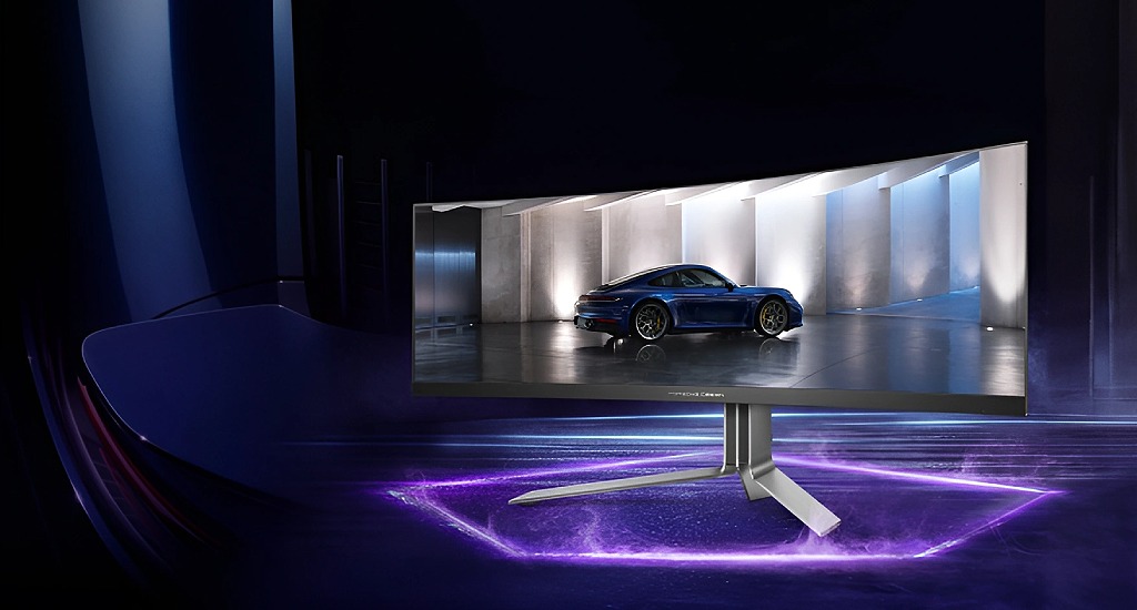 در نهایت به گرانترین و خاصترین عضو لیست میرسیم: AOC AGON PD49 49 اینچی. این شاهکار مهندسی که با همکاری «پورشه دیزاین» (Porsche Design) ساخته شده، ظاهری شبیه به جلوپنجره خودروهای اسپرت دارد. این مدل 49 اینچ فوق عریض (Super Ultrawide)، معادل دو صفحه نمایش 27 اینچ کنار هم است؛ اما بدون هیچ حاشیهای در وسط تصویر. پنل QD-OLED این نمایشگر نه تنها سریعترین پاسخگویی تاریخ نمایشگرها را به اجرا میگذارد؛ بلکه با رنگهای کوانتومی، کیفیتی خیرهکننده دارد. این مدل برای گیمرهایی مناسب است که محدودیت بودجه ندارند و میخواهند میز کارشان شبیه به کابین یک سفینه فضایی باشد.